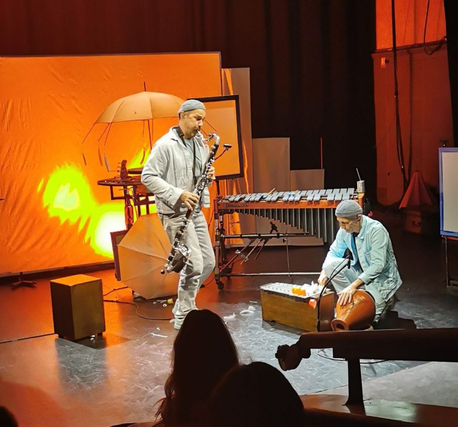 Deux artistes du collectif L’arbre CANAPAS nous plongent dans leurs pensées et nous font rêver grâce à leur lutherie sauvage, en effet ils ont détourné de nombreux objets du quotidien pour les transformer en instruments.