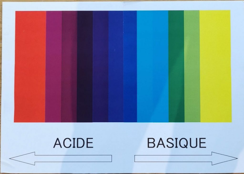 On obtient une échelle des couleurs du chou rouge en fonction de l’acidité: