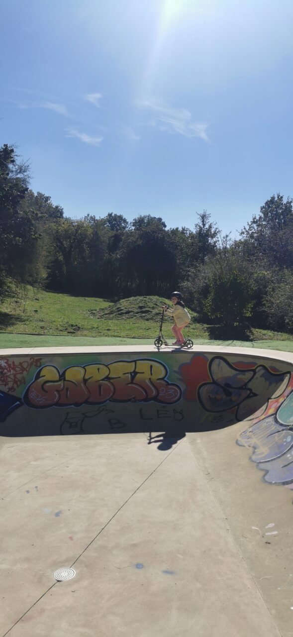 Troisième séance de trotinette, Au programme découverte du skate parc et equilibration sur un pied. Matériel chargé en route piur le skate park Voici nos 2 athlètes Joakim et Zoé. En avant pour la séance d’équilibration. On pousse fort et… Lire la suite →